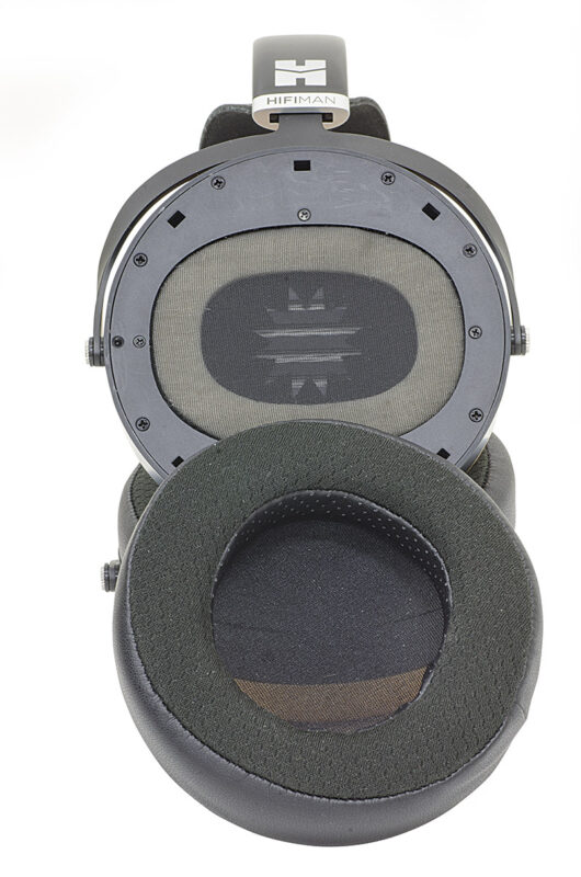 Hifiman ha introdotto già da un po’ questa geometria delle sue armature che pure ha denominato “stealth”, “nascosta”. Accedendo alla parte posteriore sono ancor più evidenti le accortezze prese in fase di sviluppo. La coppia lignea ha incollato al suo interno dell’assorbente che non la ricopre interamente ma risulta efficace nell’attenuazione delle onde sonore emesse posteriormente. Dal lato posteriore è possibile anche osservare meglio il trasduttore magneto-planare poiché non vi è incollato sopra alcun assorbente. La superficie vibrante è di forma ellittica e non circolare come nella Sundara Open; le barre magnetiche che formano l’armatura ne seguono la geometria e sono quindi corte verso l’esterno e più lunghe nella parte centrale, ma soprattutto le tre barre centrali sono di materiale diverso. È facile constatare che l’intensità del campo magnetico è molto più elevata nei pressi delle tre barre centrali che in tutte le altre. Non siamo riusciti a contattare i laboratori di sviluppo di Hifiman per avere maggiori delucidazioni in merito, ma un’idea ce la siamo fatta. Un sistema elastico come quello costituito dalla membrana che vibra immersa nel campo magnetico trova in un ambiente chiuso il carico acustico composto dall’aria racchiusa nel volume sigillato posteriore, ma anche quello anteriore poi non è così aperto perché la superficie dei padiglioni è ampia e i morbidi cuscinetti in dotazione tendono a sigillare il tutto.