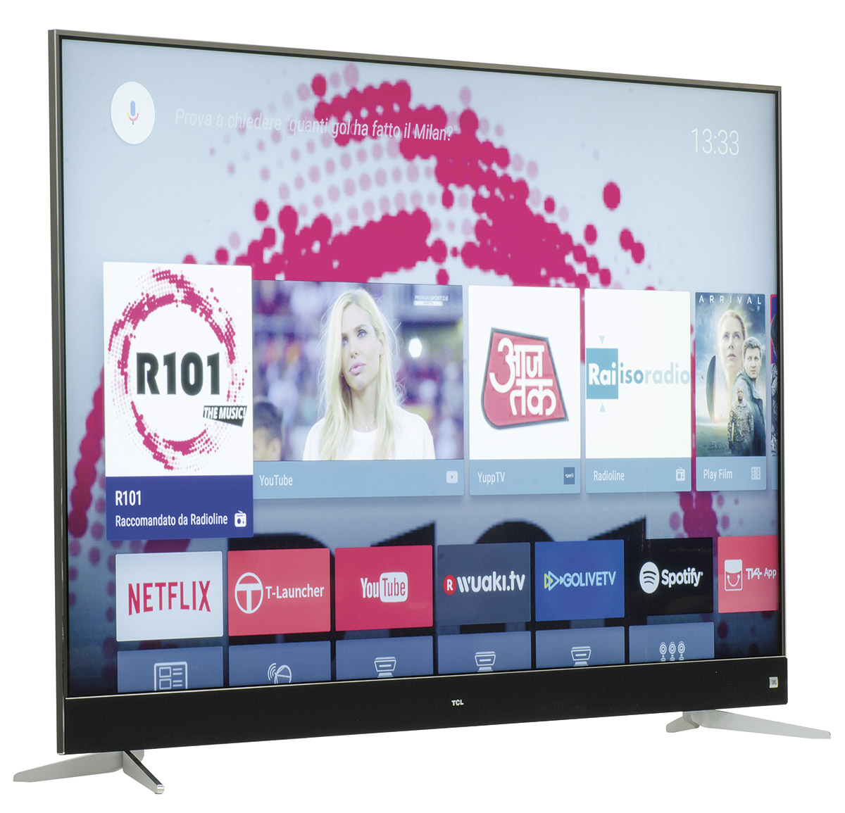 Come è possibile? Anche se molti display SDR fino ad ora provati potevano contare su una luminosità simile se non superiore a quella del TCL in prova, bisogna tenere conto del fatto che nelle modalità adatte alla visione dei film l’output luminoso massimo era molto più basso, attorno ai 100 nit. Questo apparecchio invece, quando è pilotato con segnali HDR, riesce a tirare fuori tutta la sua seppur limitata potenzialità e, pur non risultando visivamente potente come i concorrenti più luminosi, riesce comunque a garantire un risultato “brillante”. La resa audio è molto aperta e meno prestante all’estremo inferiore di quanto la soundbar frontale non lasciasse presagire.