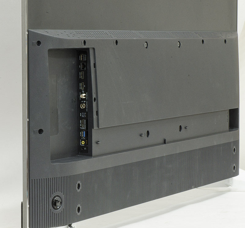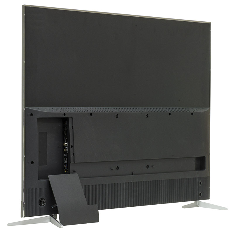 Esteticamente il televisore non offre spunti particolari, ma il retro, con le connessioni completamente protette da una copertura, consente di installare l’unità anche a spalle scoperte. La sezione audio è costituita da una soundbar “front firing” realizzata in collaborazione con JBL. L’apparecchio dispone anche di connessione Bluetooth per connettere una cuffia.